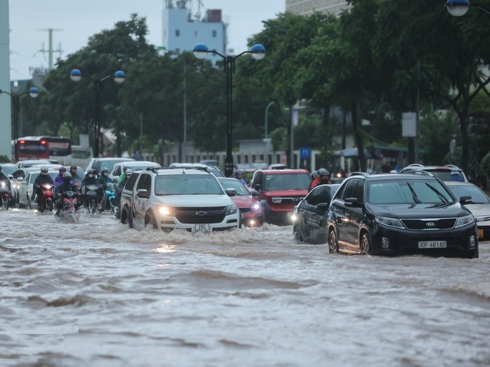 Nhiều tuyến đường của thành phố Hà Nội "chìm" trong biển nước do cường độ soi kèo nhà cái hôm nay lớn. Ảnh: Hoài Nam/Vietnam+