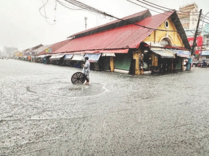 Ngập tại chợ Thủ Đức khi mưa lớn. Ảnh:Báo Nhân Dân